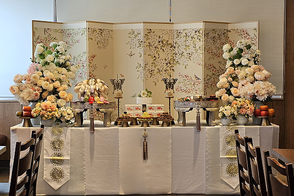 2단 고급 병풍 상차림으로 서울고급호텔에서 인기있는 상품 입니다